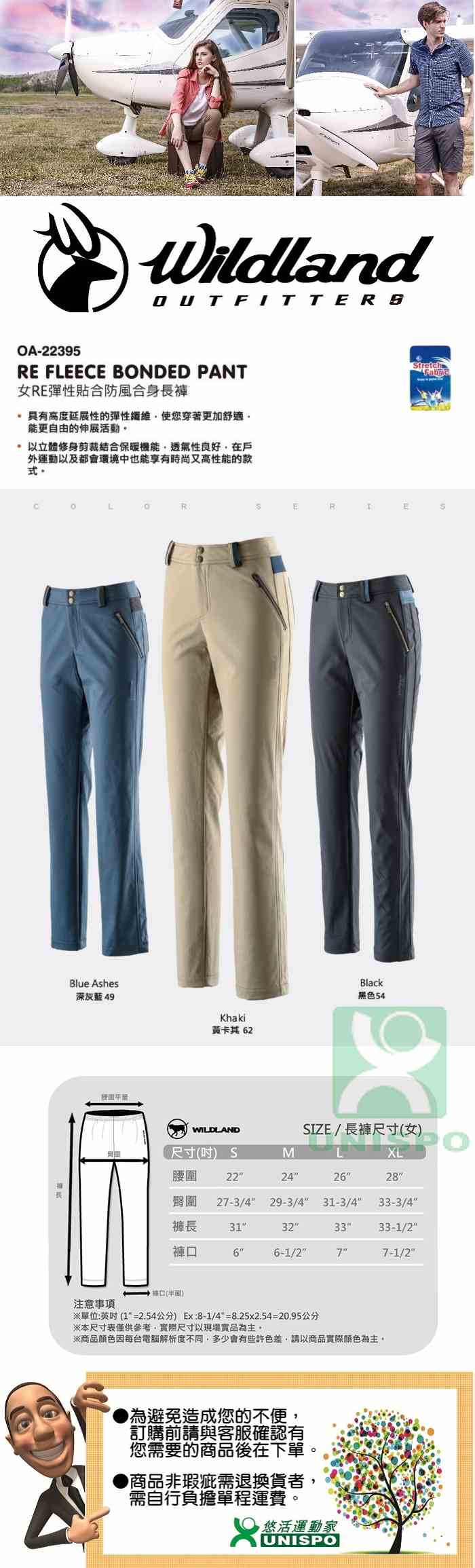 WILDLAND 台灣 女RE彈性貼合防風合身長褲 22395