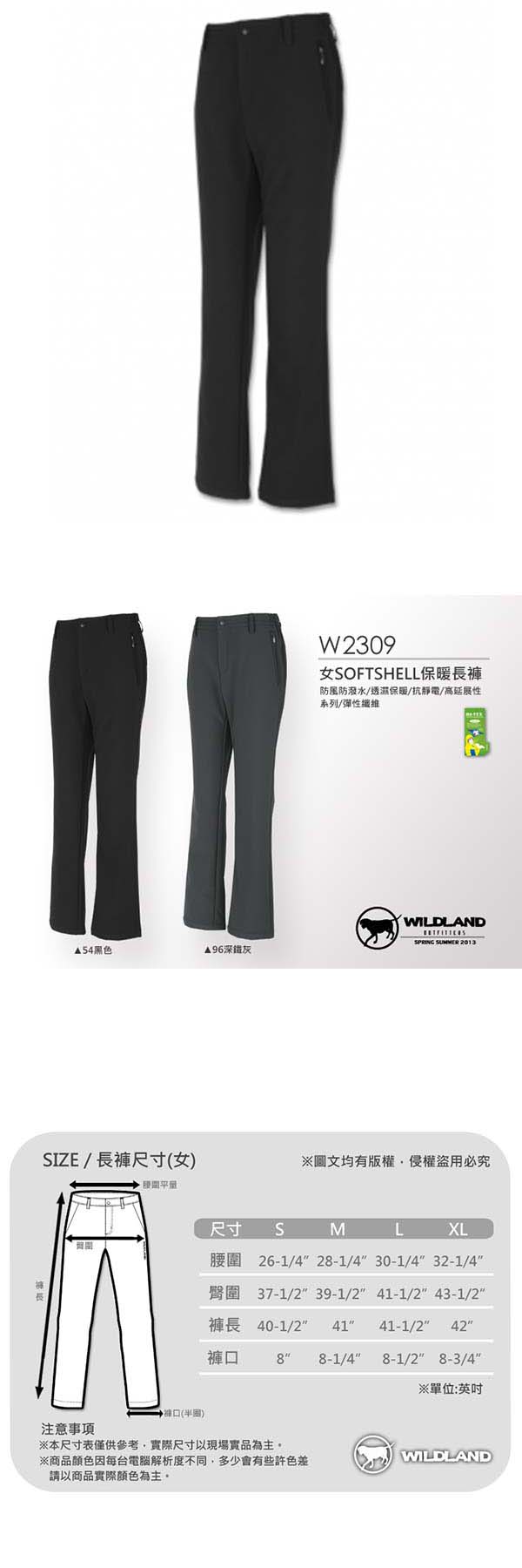 WILDLAND W2309-54 女SOFTSHELL保暖長褲