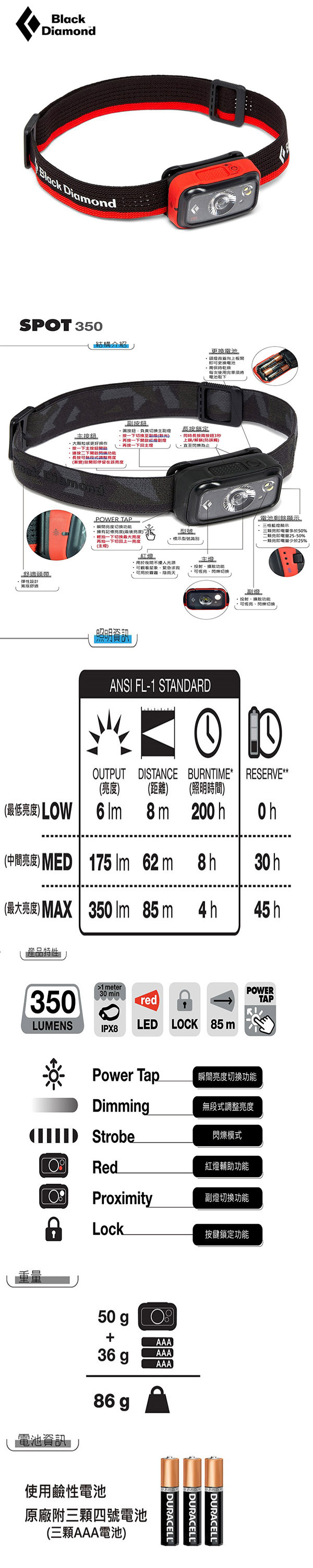 使用高效率LED主燈泡,最高亮度達350流明,最遠可照85公尺。